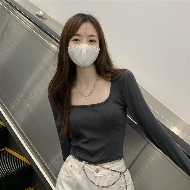 クロップドスリムソリッド カラーTシャツスプリング秋物 春物 オータム ソリッドカラー ウエスト コーデ Marchs66411898775