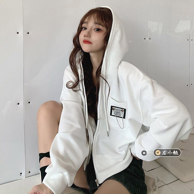 ホワイトショートフードセーター コート スプリング秋物ルーズカーディガントップス ロング 春物 オータム 長袖 コーデ marchs6793899394557