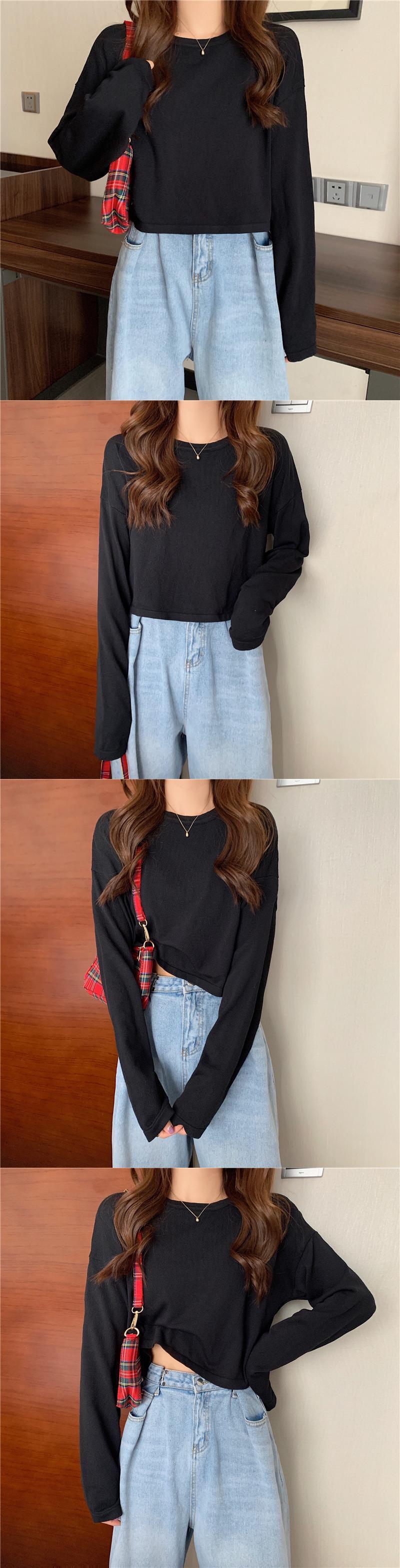 秋物Tシャツシャツ ルーズスタイルゆったりショートトップス ロング オータム パープル 長袖 コーデ Marchs80541273391