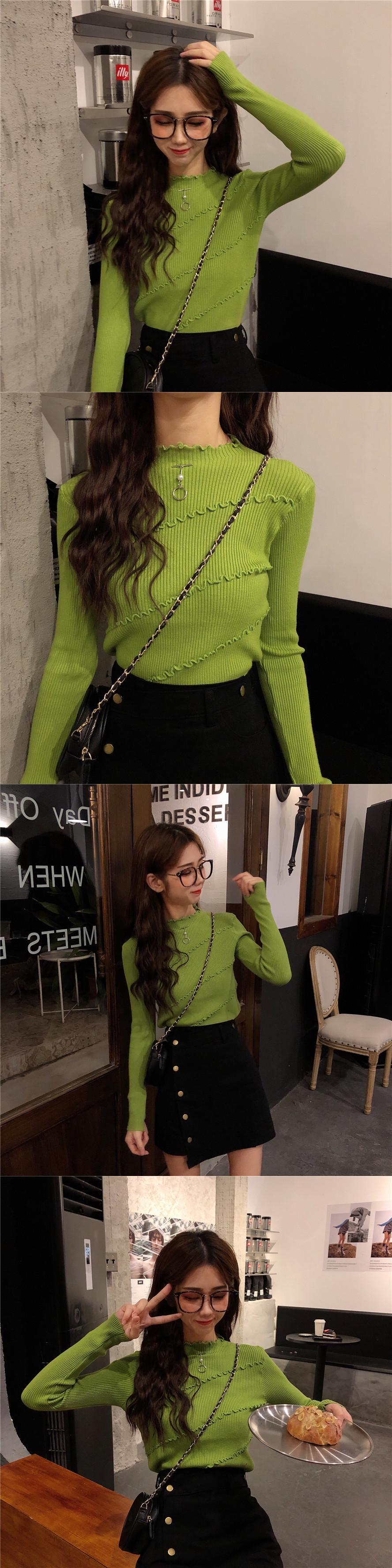 ゆったりシャツ 秋物スタイルスリム韓国ファッションニットセーター トップス レディース ロング オータム 長袖 コーデ Marchs18588599521