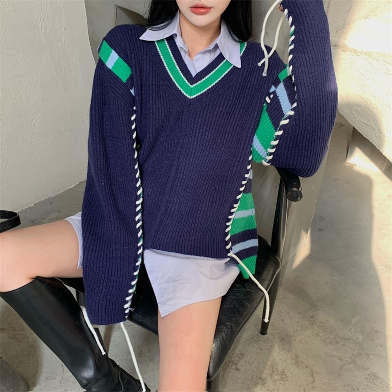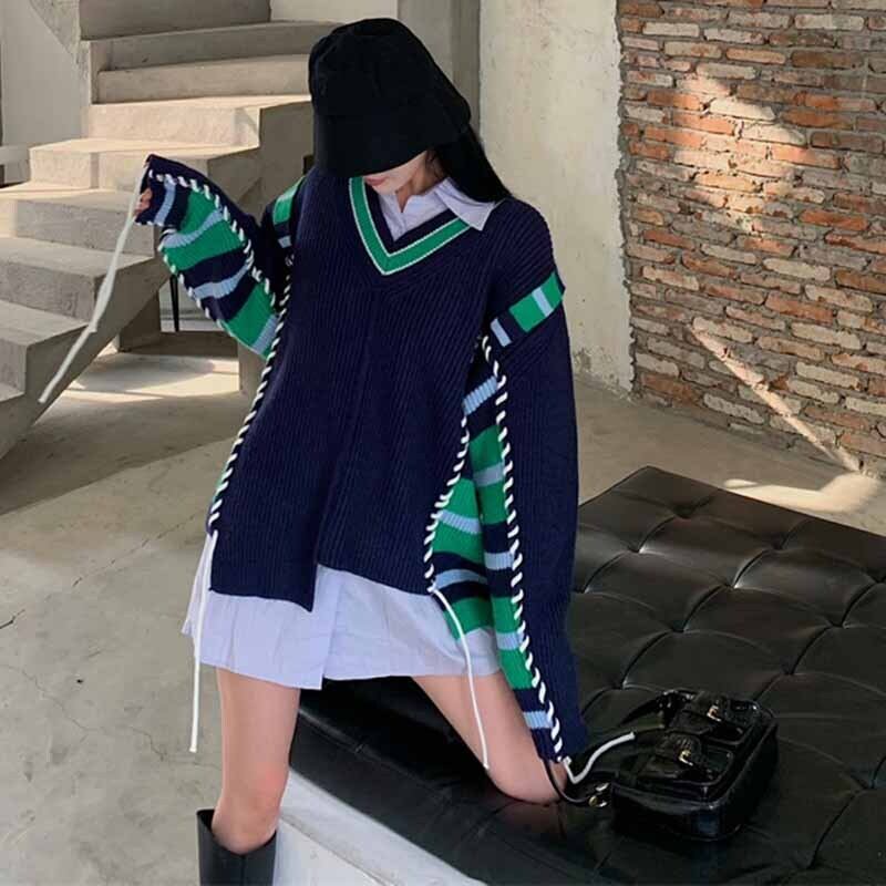 Vネックセーター スプリング秋物スタンダードニット レトロ 春物 オータム コーデ marchs6793779667640