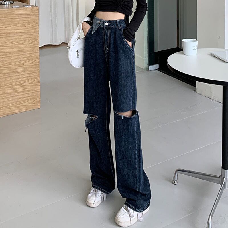 スプリング秋物ジーンズ ルーズパンツ ハイウェスト 春物 オータム ウエスト コーデ marchs6754746588870
