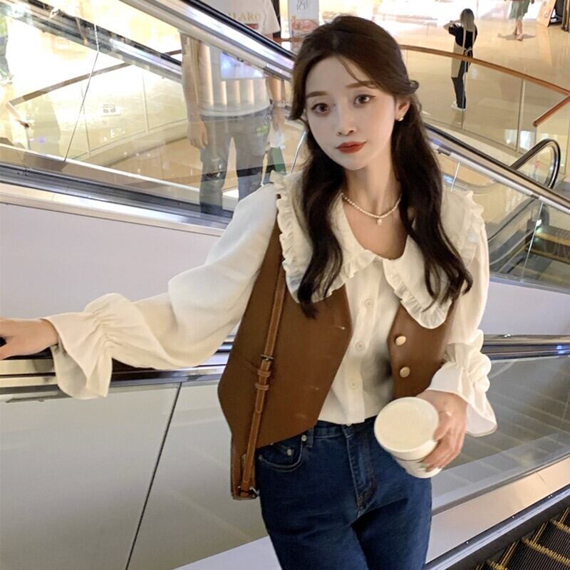色:ブラウンベスト,アプリコットシャツ