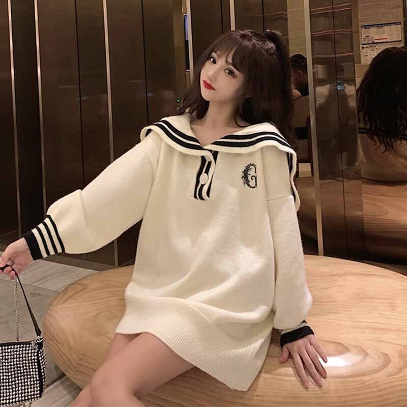 スタイルホワイトネイビーカラーセーター スプリング秋物ルーズスタンダード レトロ 春物 オータム コーデ marchs6719018905317