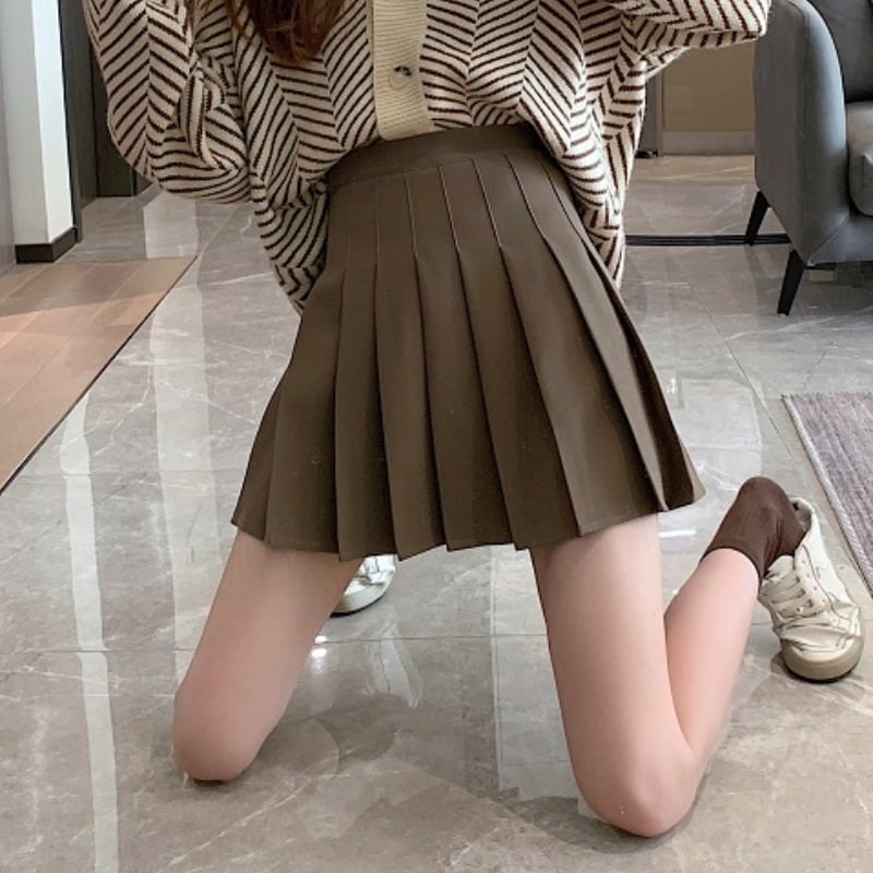 スプリング秋物ブラウンスタイルショートスカート ハイウェストウェスト薄手プリーツレディース 春物 オータム ウエスト コーデ Marchs17880931158