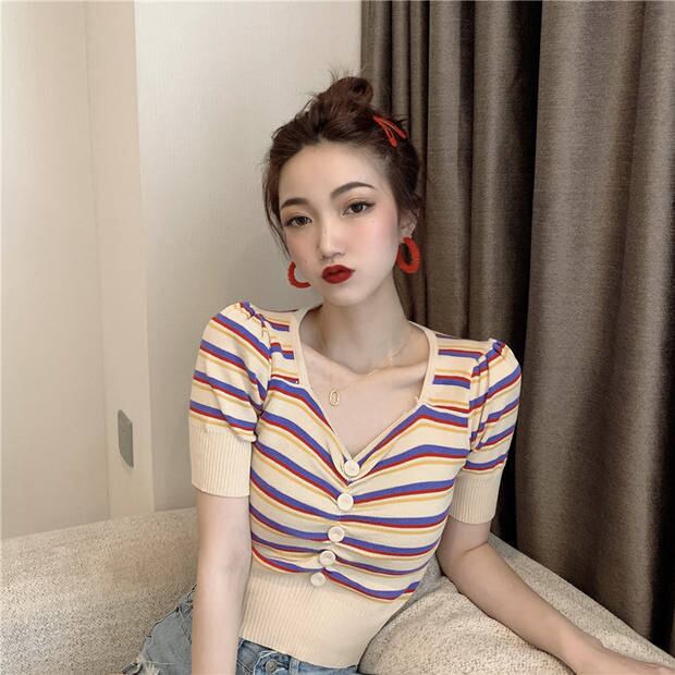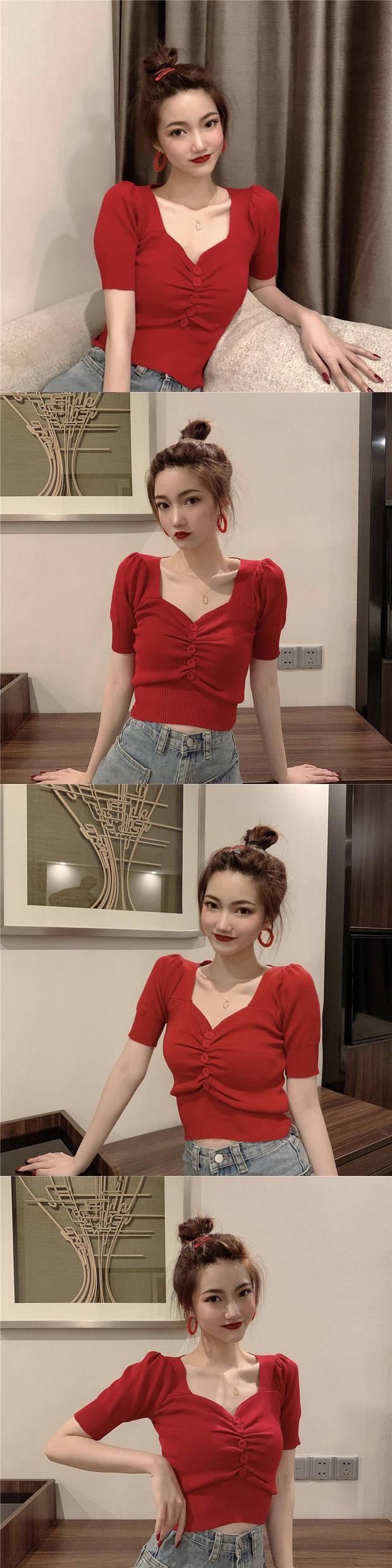 トップス ショートTシャツ夏服Vネックウェストスリーブニット 夏物 ウエスト コーデ Marchs53244388279