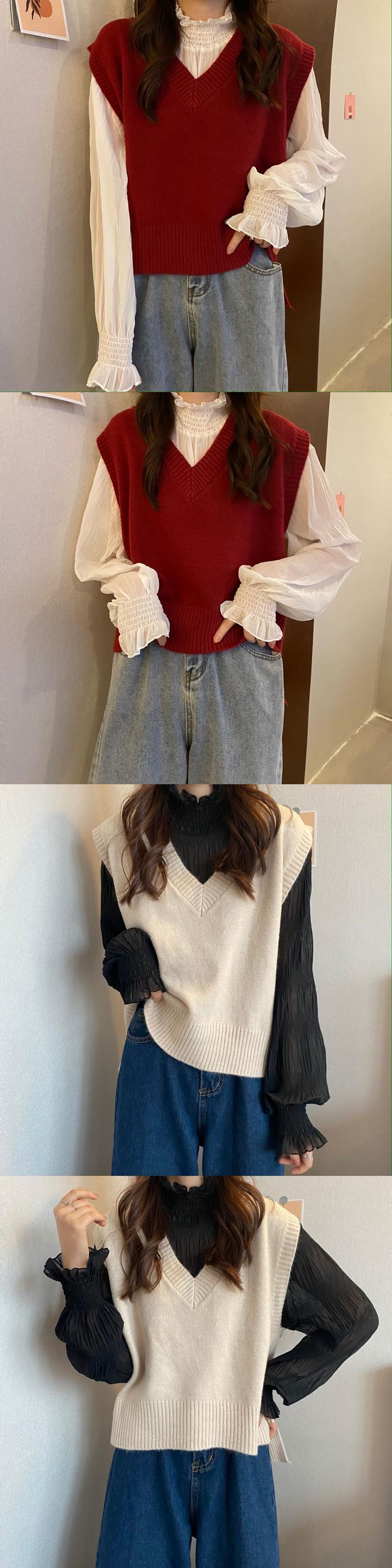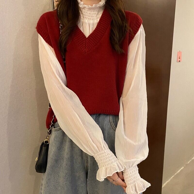 スタイルVネックニットレディーススプリング秋物スタンダードノースリーブオレンジセーター レトロ 春物 オータム コーデ Marchs40663049977