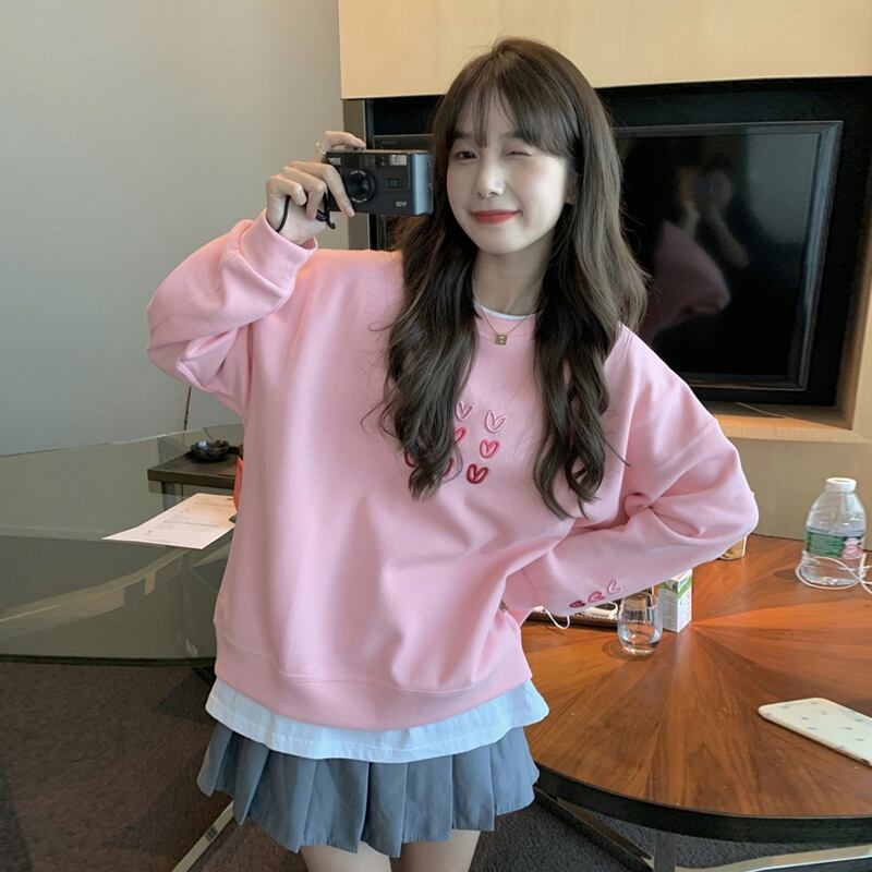 オーバーサイズジャケット 薄手ルーズラウンドネックセーター レディーススプリング秋物NEW ロング ピンク 春物 オータム Oネック ボーイズ 長袖 コーデ Marchs1935608236