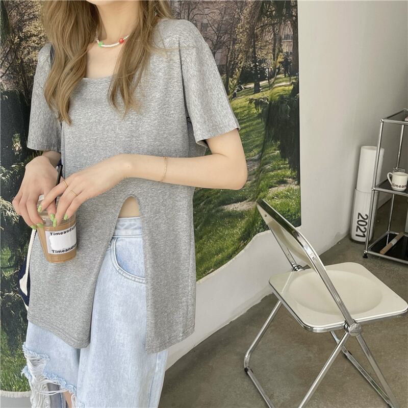 韓国ファッションルーズソリッド カラートップス ゆったりTシャツレディース夏服 大人ガーリー スウィート キュート カジュアル 夏物 ソリッドカラー スタイル コーデ marchs6797990356116