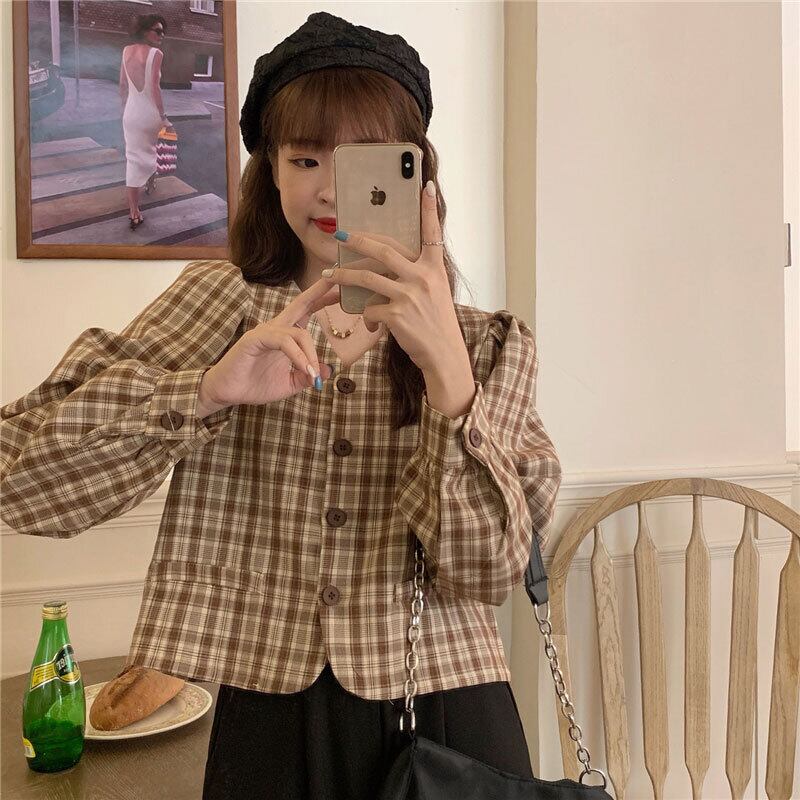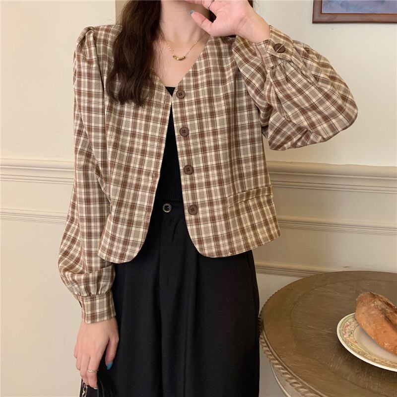 スタンダード格子柄ジャケット スプリング秋物薄手ショート ロング レトロ 春物 オータム 長袖 コーデ marchs6713772706571