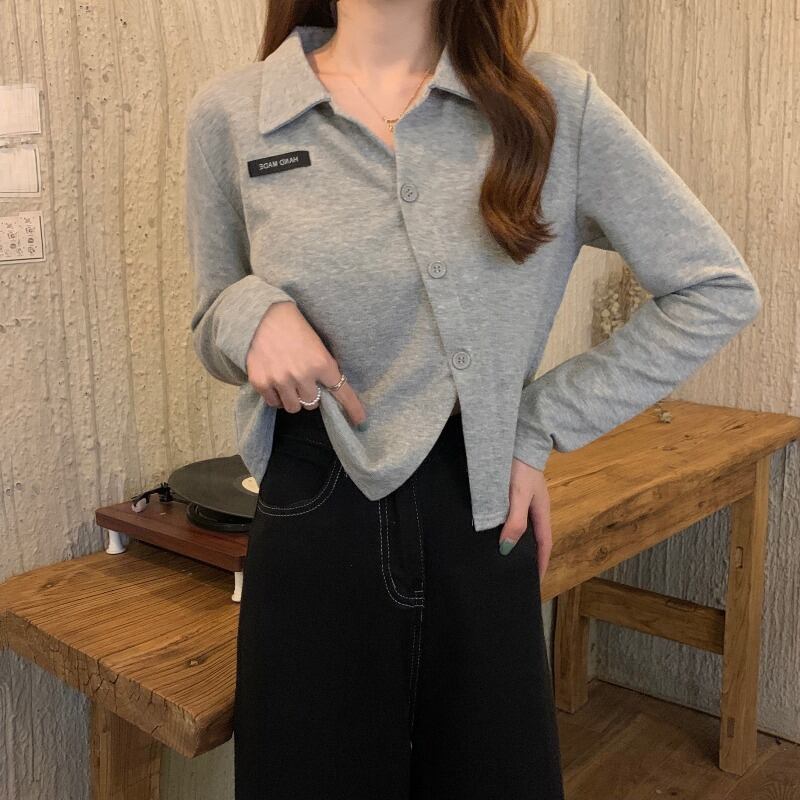 秋物ルーズ薄手Tシャツレディースショートカラートップス ロング オータム 長袖 コーデ Marchs61173685842