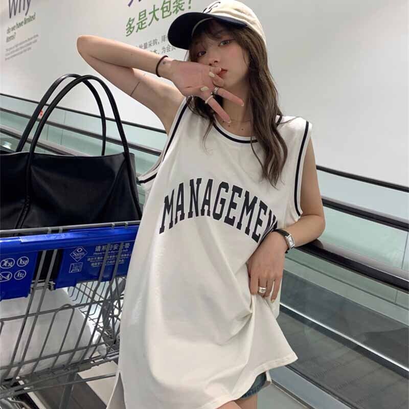 レディース夏服薄手ノースリーブトップス ルーズプリントTシャツ 夏物 コーデ marchs6714066607475