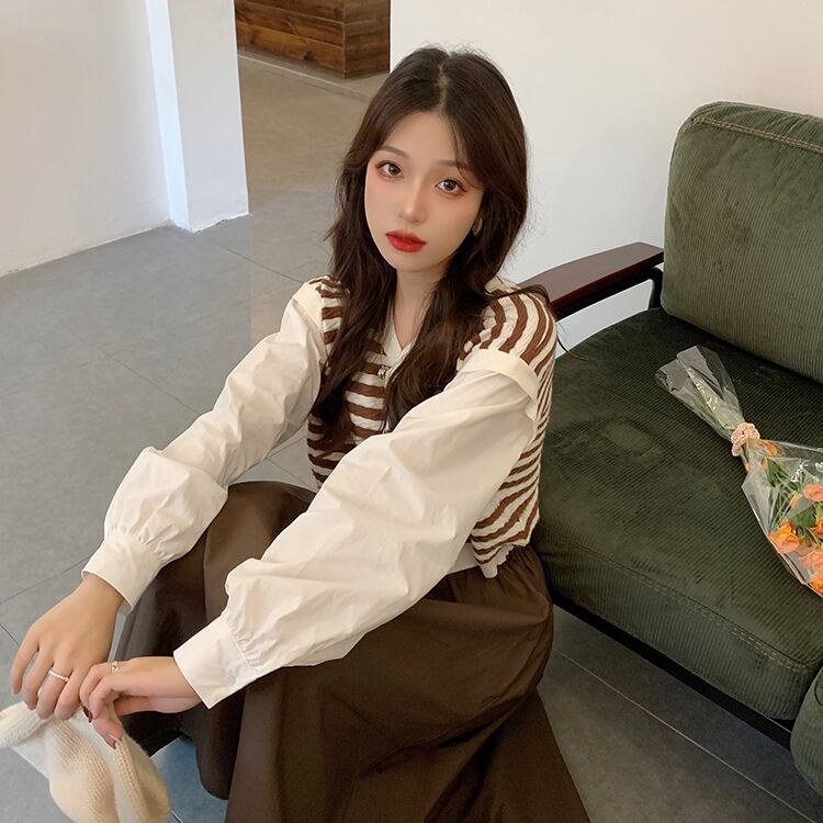 色:コーヒーストライプトップ,ブラックストライプトップ,グリーンストライプトップ,コーヒースカート,黒スカート,緑のスカート