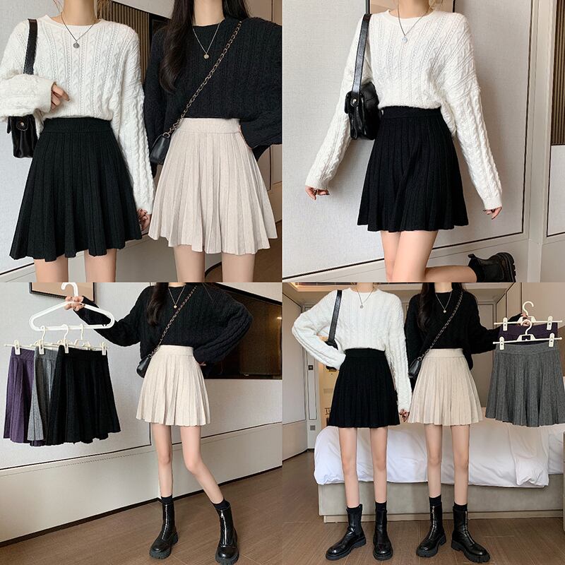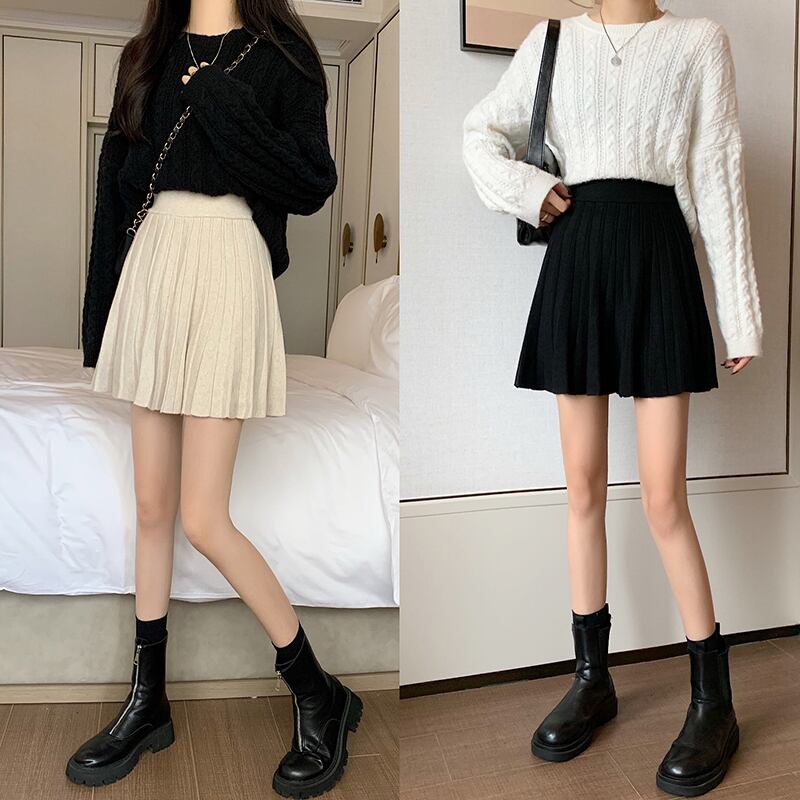 プリーツスカート レディース秋物スタイルショートハイウェストウェストセーター ウィンター オータム 冬物 ウエスト コーデ Marchs16146068047