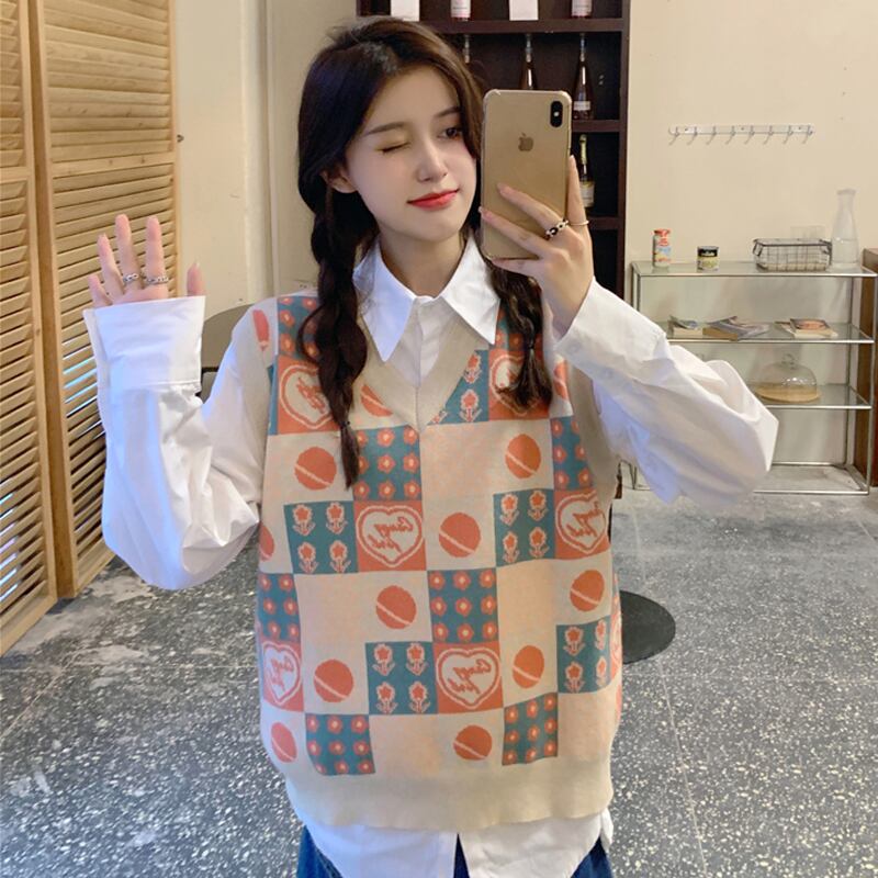 色:ピンクのベスト,アプリコットベスト,白のシャツ