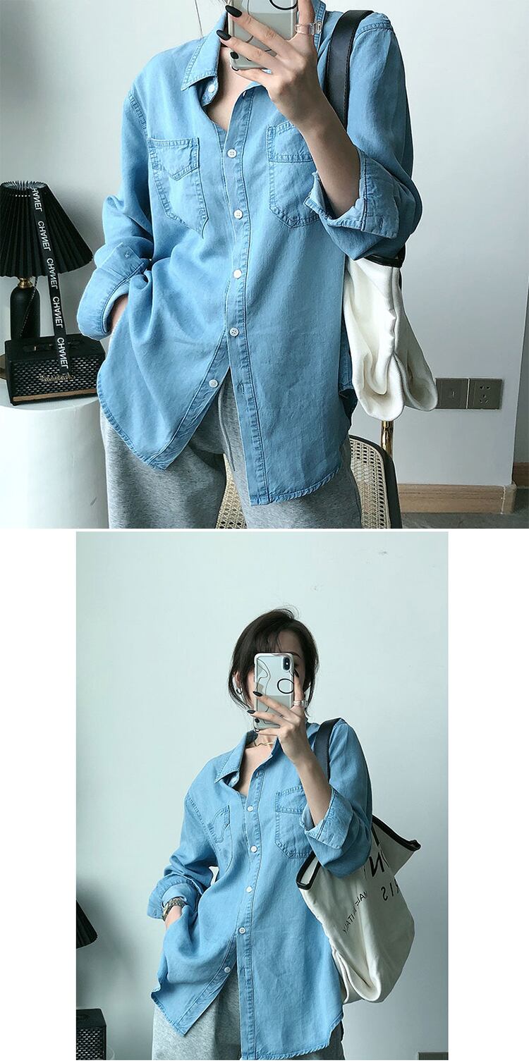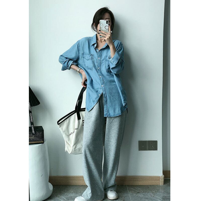 シャツ 秋物ルーズ韓国ファッションスタイル薄手トップス ロング オータム 長袖 コーデ Marchs5360271697