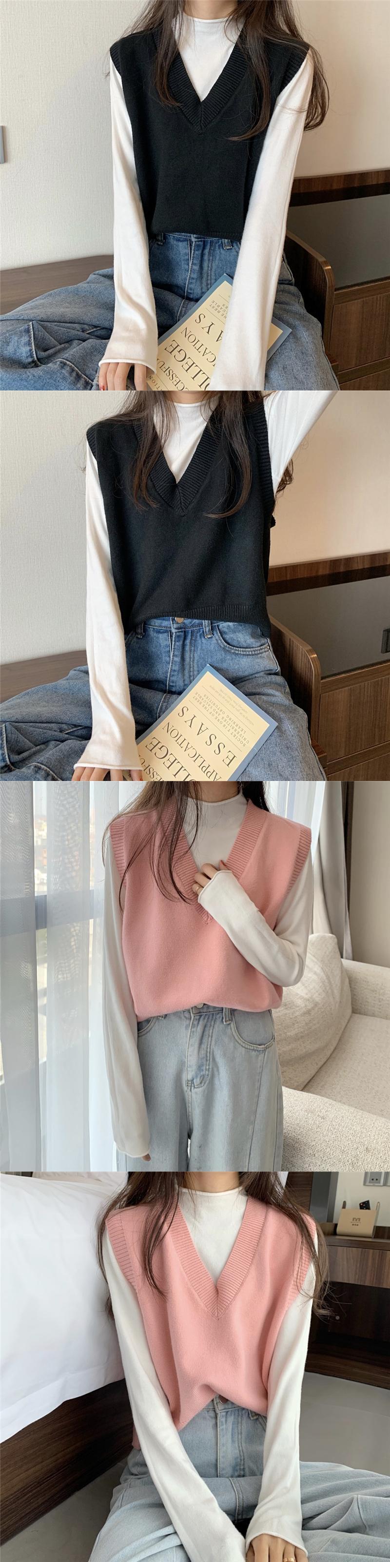 ホワイトVネックニットレディーススプリング秋物セーター ノースリーブジャケット 春物 オータム コーデ Marchs30164171942