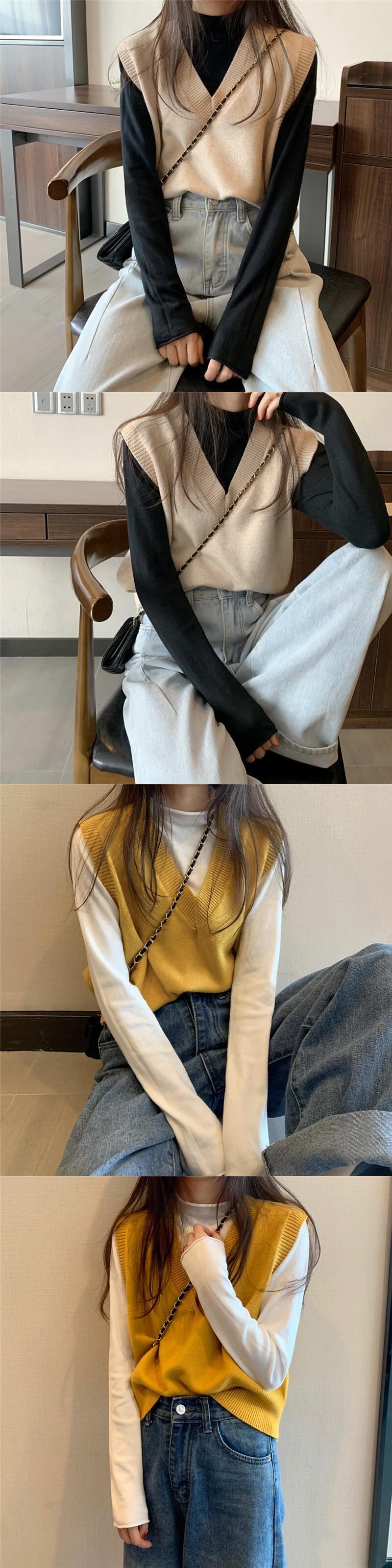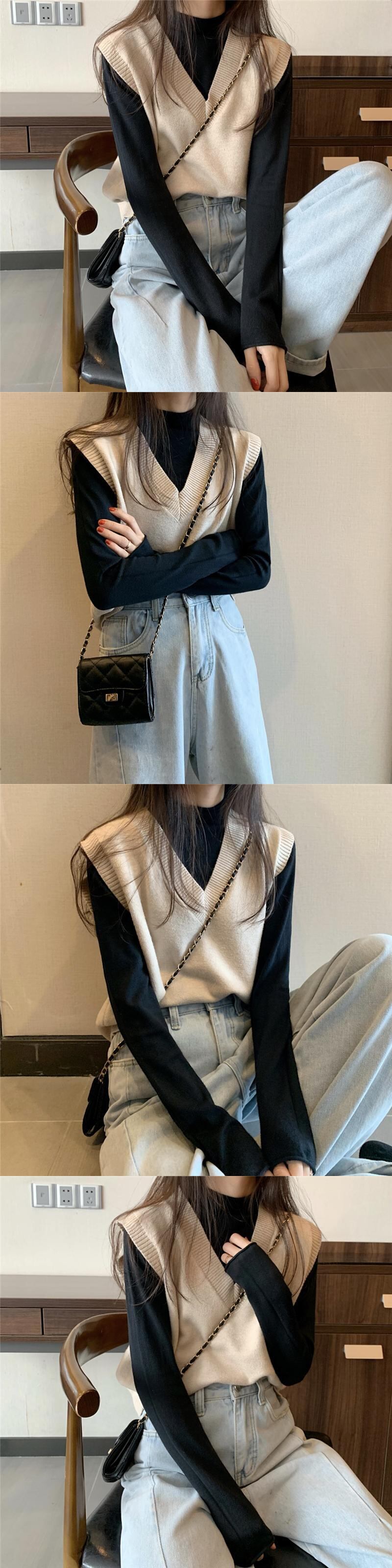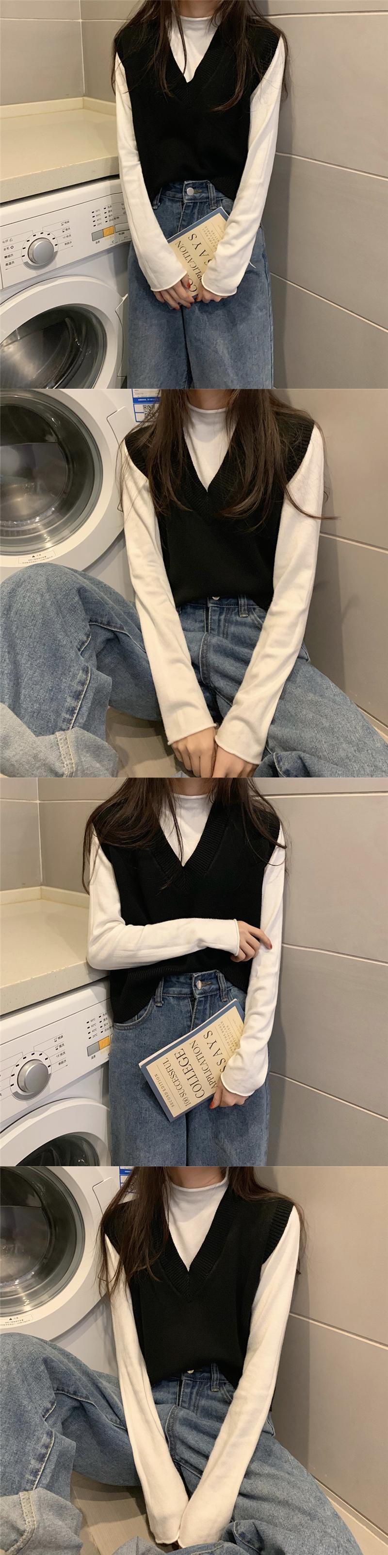 秋物Vネックジャケット ニットセーター ショートノースリーブレディース 半袖 ハーフスリーブ オータム ウエスト コーデ Marchs23300064872