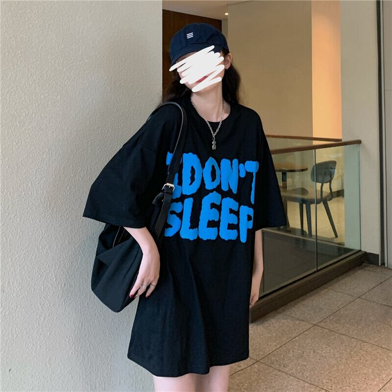 夏服プリントブラックTシャツレディースロングルーズ 夏物 コーデ marchs6712093962164