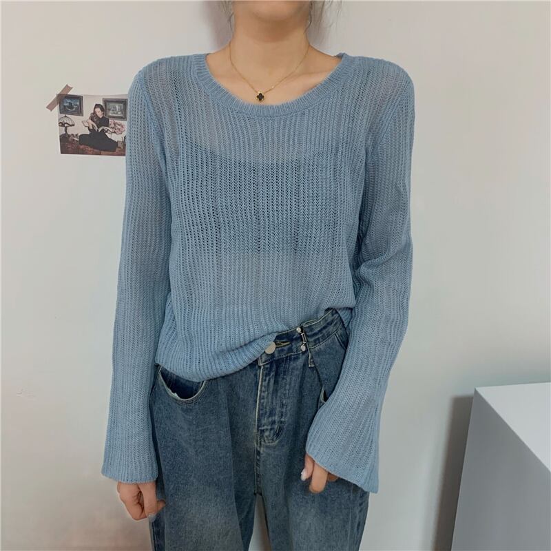 秋物Tシャツニット セーター ルーズブラウス トップス 夏服 ロング 夏物 オータム シルク 長袖 コーデ Marchs66522356305
