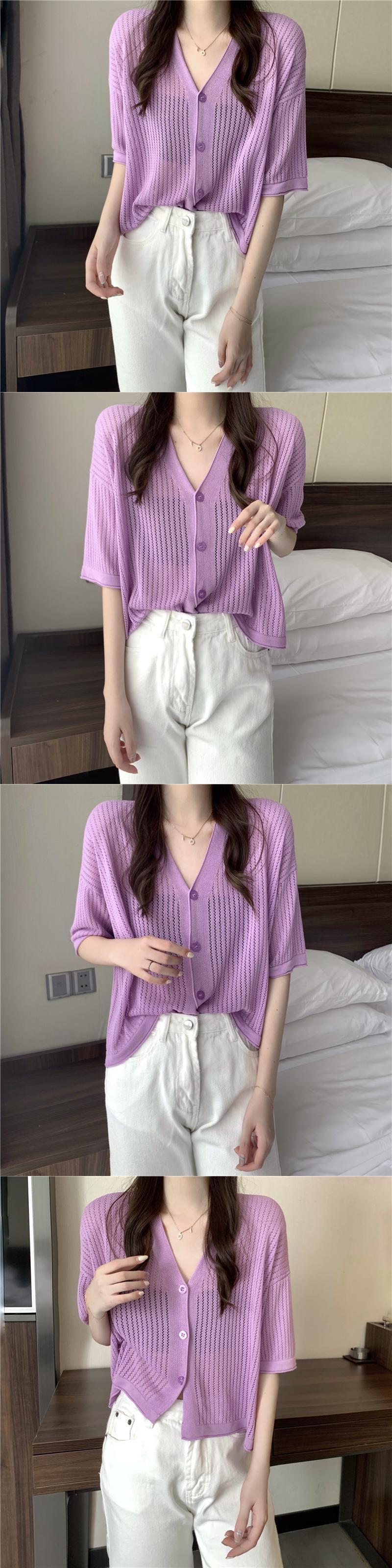ホワイトカーディガン夏服スリムシャツ ニットセーター コート 薄手トップス 夏物 シルク コーデ Marchs72294071483