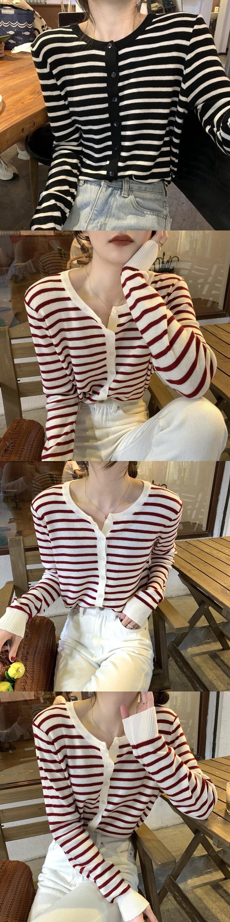 秋物ストライプ薄手ニットスプリング カーディガン 春物 オータム コーデ Marchs97487087772