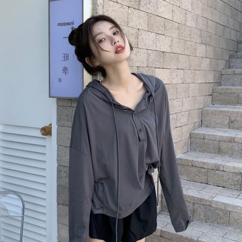 秋物トップス NEWスタイルフードTシャツルーズ ロング オータム 長袖 コーデ Marchs96828881061