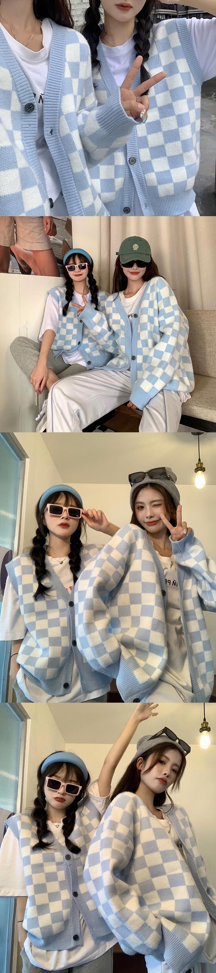 格子柄レディーススプリング秋物薄手トップス ルーズセーター ウィンター 春物 オータム 冬物 ウエスト コーデ Marchs97463778519