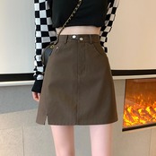 レザースカート レディーススプリング秋物ハイウェストウェスト薄手Aラインショート 春物 オータム ウエスト コーデ marchs677259069381