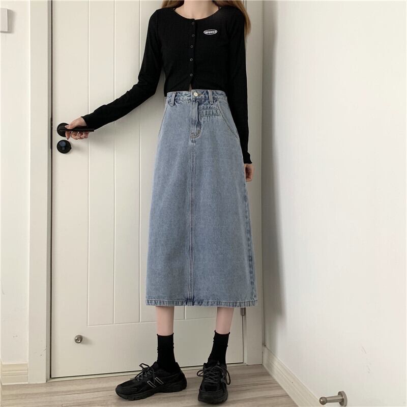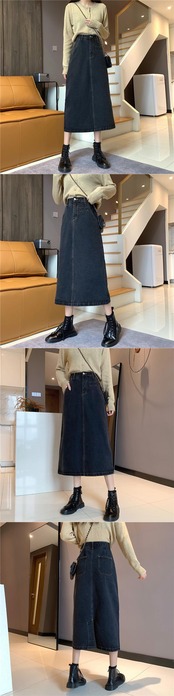 ショートハイウェストウェストダークスカート スプリング秋物Aラインルーズバックスリットロング 春物 オータム ウエスト ミドル丈 コーデ Marchs75471897082
