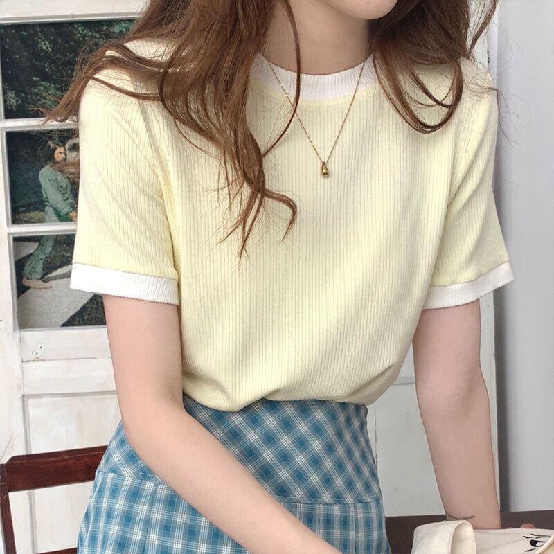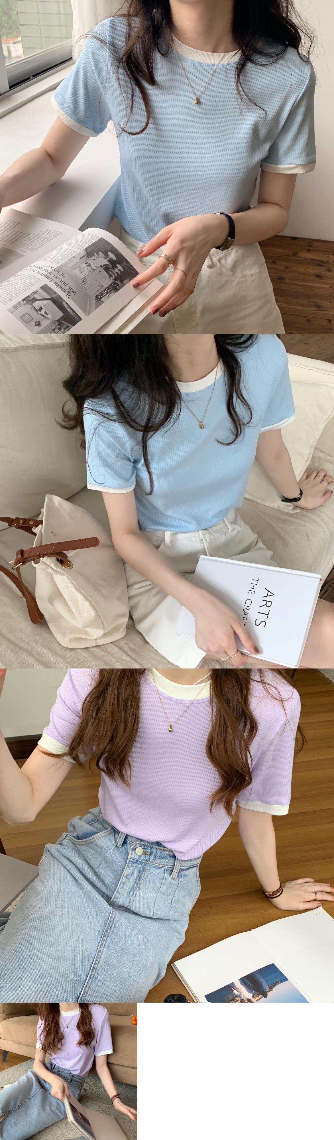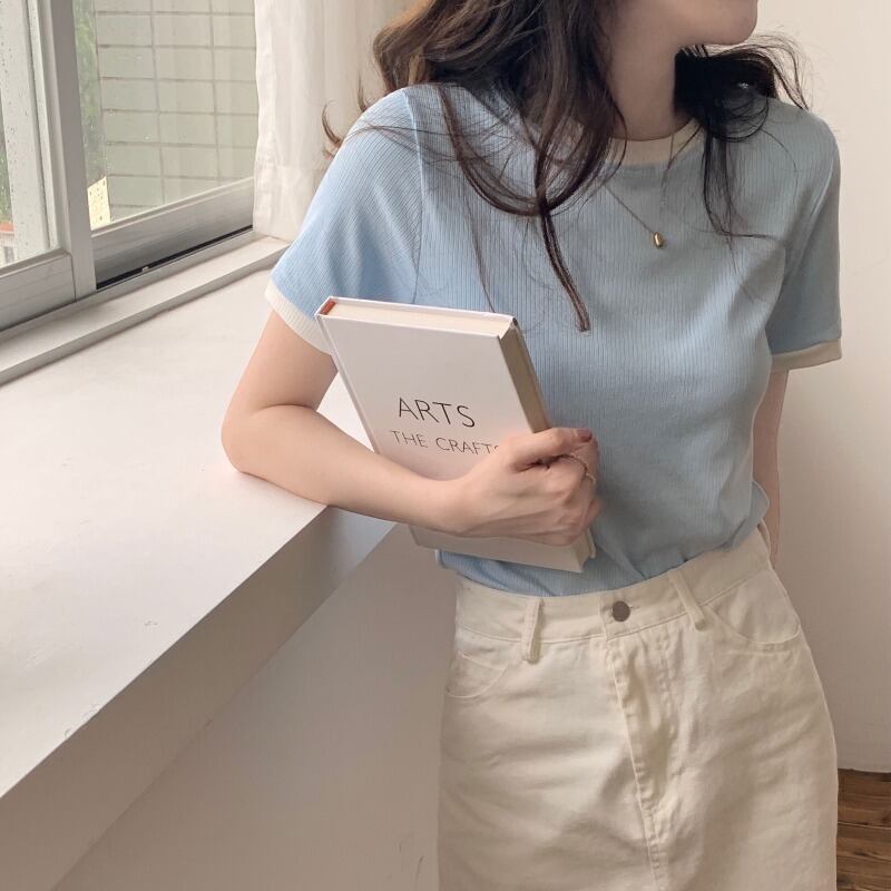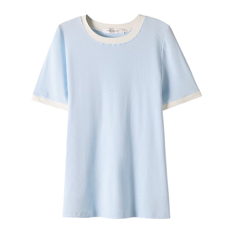 ブルーTシャツレディースカラー韓国ファッションスタイルトップス 夏服 夏物 コーデ Marchs76503676001