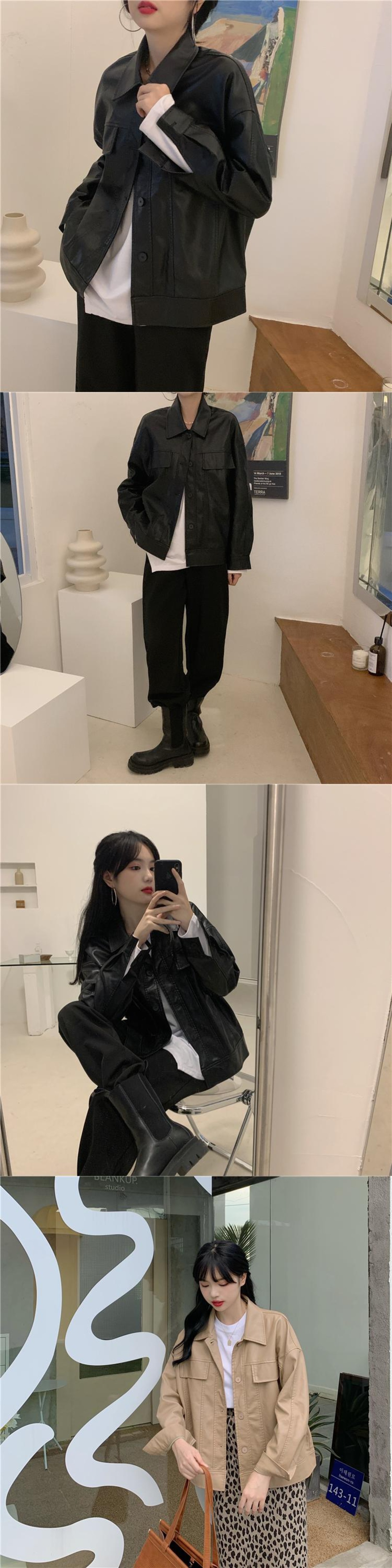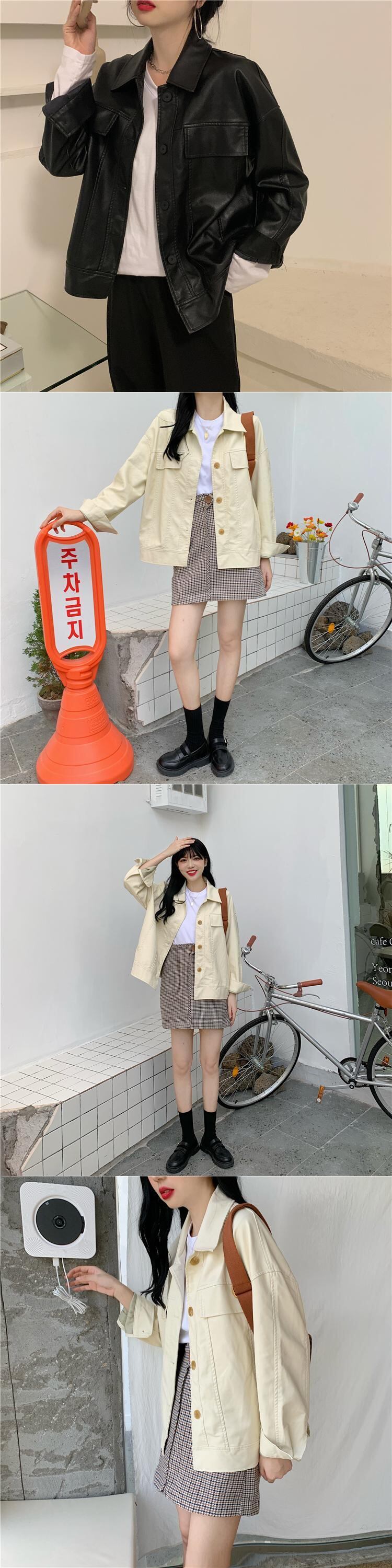 ショートブラックレザージャケット ルーズスタンダード レトロ ストリート 大人ガーリー スウィート キュート カジュアル コーデ Marchs46080269707
