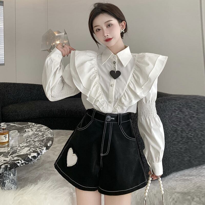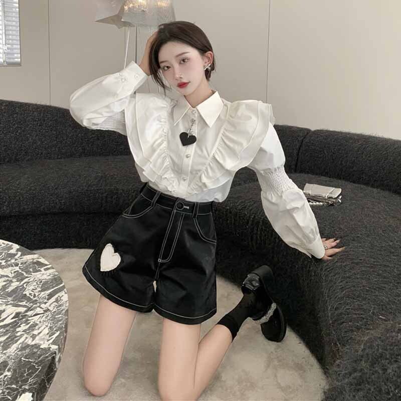 ホワイトシャツ スプリング秋物スタイルトップス ロング 春物 オータム 長袖 コーデ marchs6727398021534