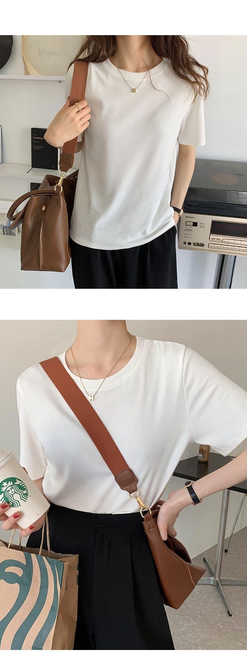 夏服ソリッド カラーラウンドネック韓国ファッションTシャツレディースホワイトトップス NEW 夏物 Oネック ソリッドカラー コーデ Marchs95386897578
