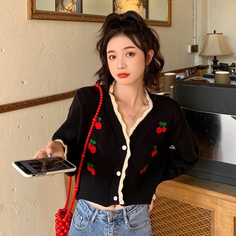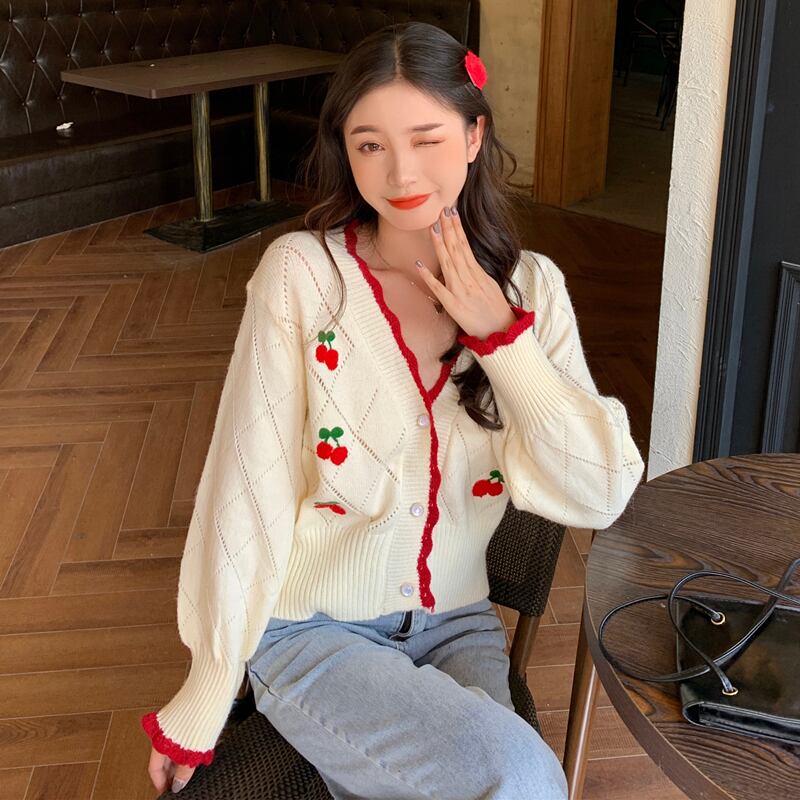 スプリング秋物刺繍セーター Vネックカーディガンコート 大人ガーリー スウィート キュート カジュアル 春物 オータム コーデ marchs6792909266451