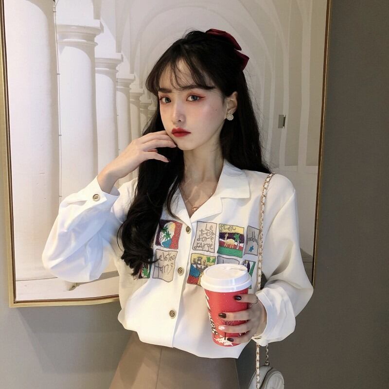 ホワイトシャツ 秋物レディースカーディガンカジュアルトップス ロング オータム 長袖 コーデ Marchs18084445801