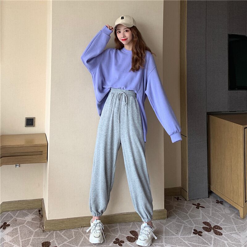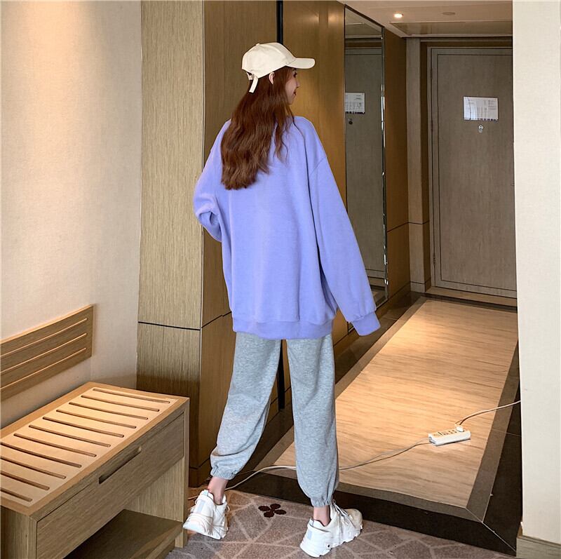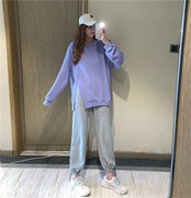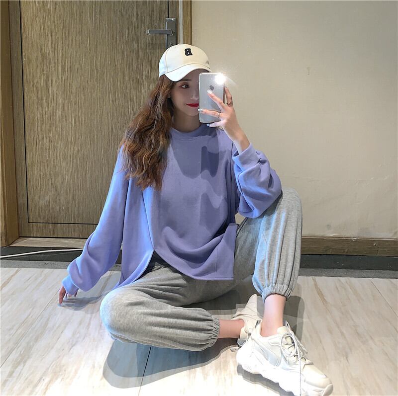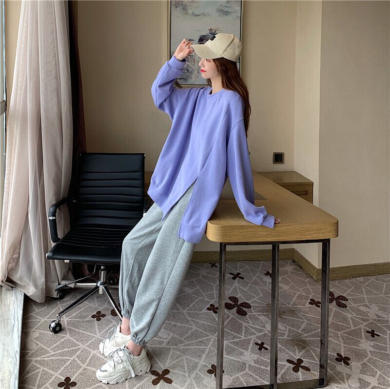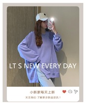 ラウンドネックセーター レディーススプリング秋物薄手ルーズ韓国ファッションブラウス 春物 オータム Oネック パープル スタイル ミドル丈 コーデ Marchs52890081450