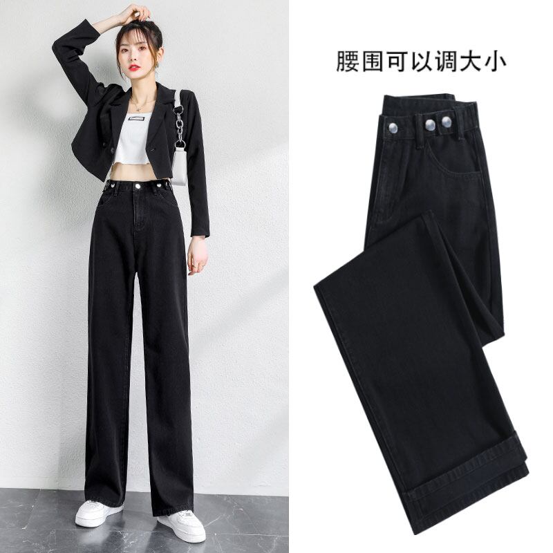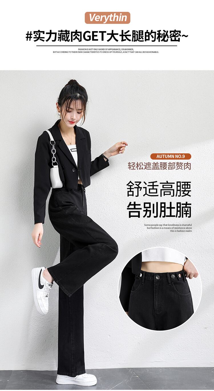 ブラックジーンズ ルーズスプリング秋物ハイウェスト薄手パンツ 春物 オータム ウエスト コーデ Marchs82890382927