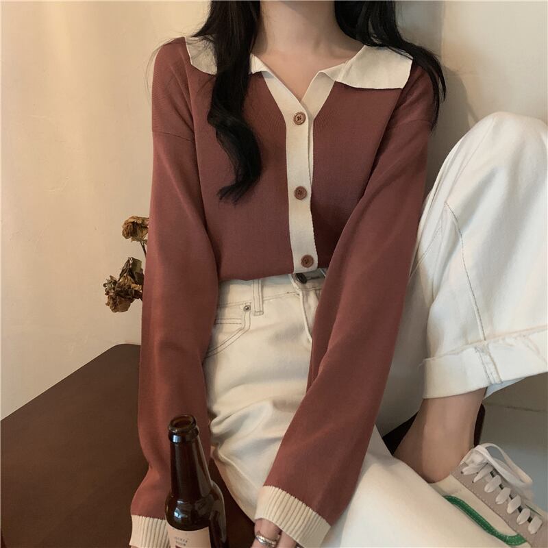 カラーニットカーディガン秋物ブラウス セーター コート ロング オータム 長袖 コーデ Marchs68487234900