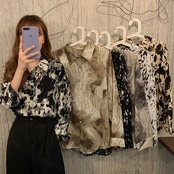 スプリング秋物韓国ファッション薄手ルーズスタンダードスタイルフローラルシャツ レディース ロング レトロ 春物 オータム 花柄 長袖 コーデ marchs6762012947008