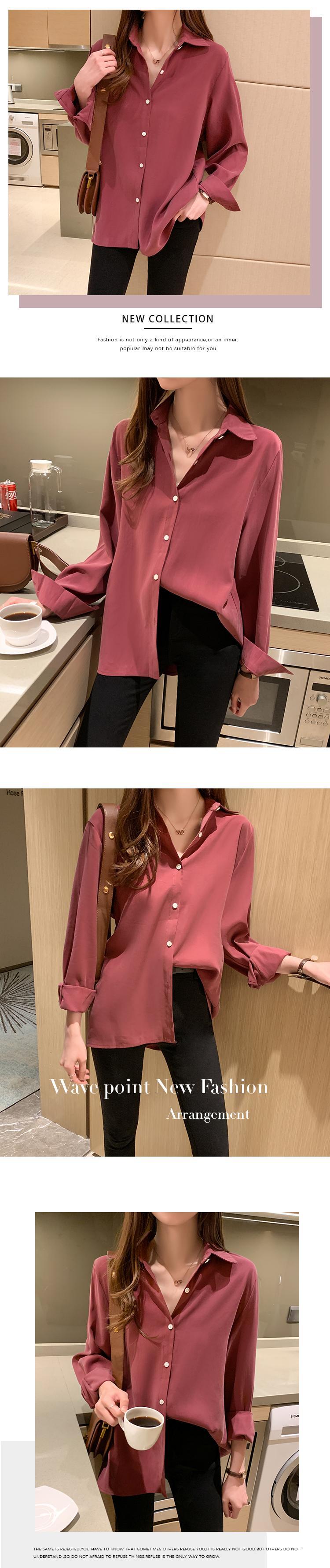 レッドシャツ レディーススタンダードスタイルVネック秋物シフォン ロング レトロ オータム 長袖 コーデ Marchs65096714516