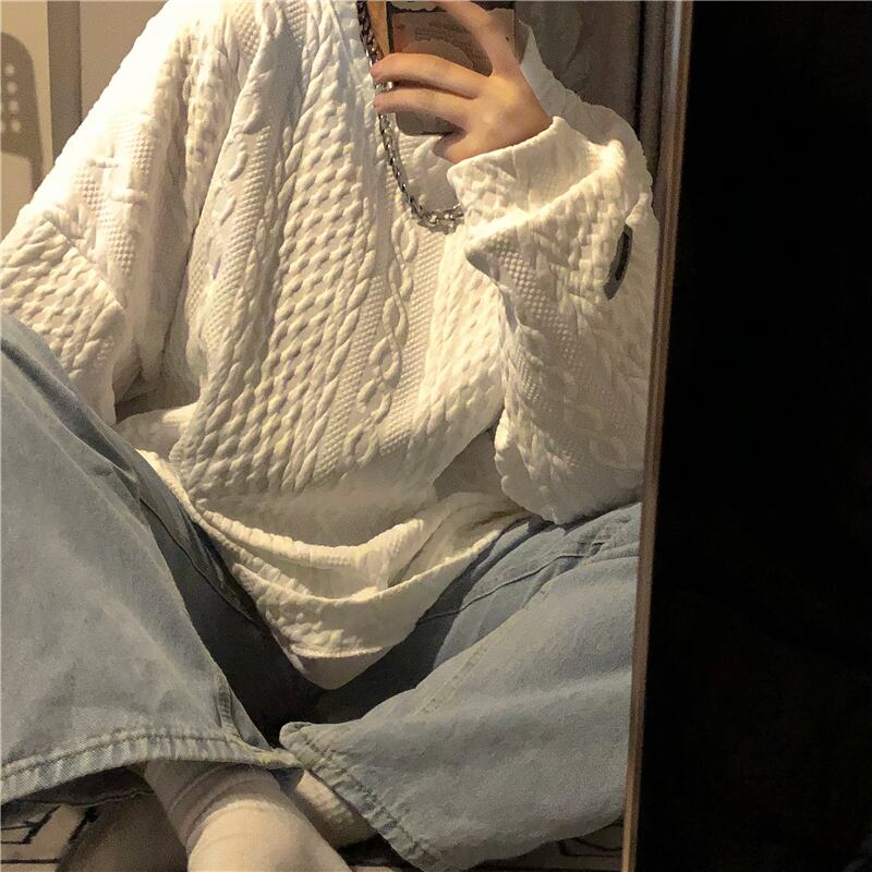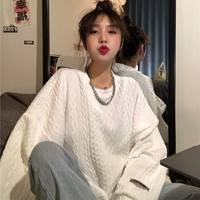ホワイトラウンドネックセーター レディーススプリング秋物薄手トップス ルーズ韓国ファッションスタイル ロング 春物 オータム Oネック ボーイズ 長袖 コーデ Marchs42422661732