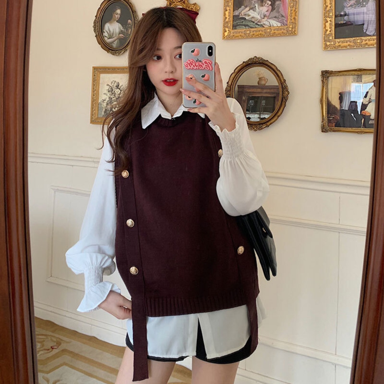 色:白のシャツ,黒のベスト,コーヒー色のベスト