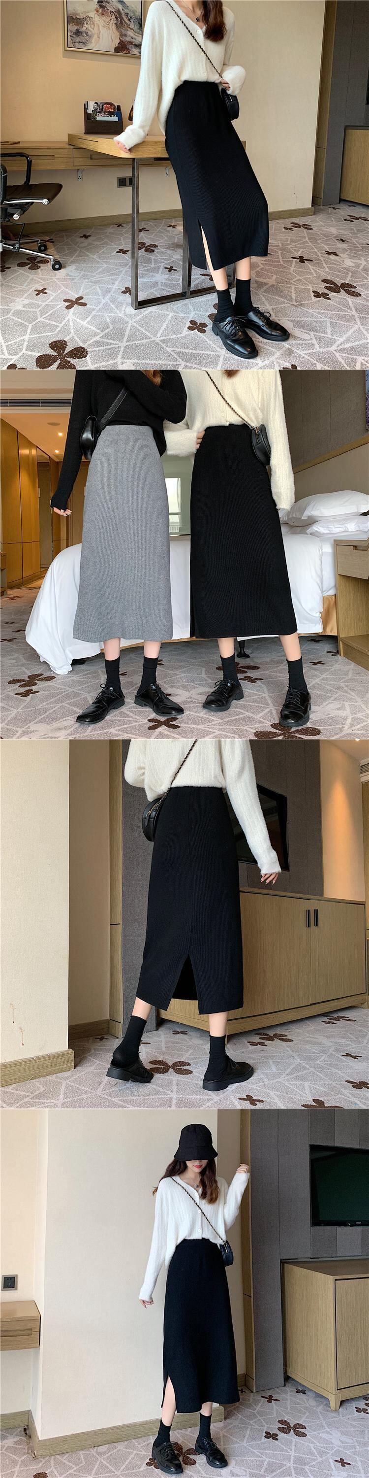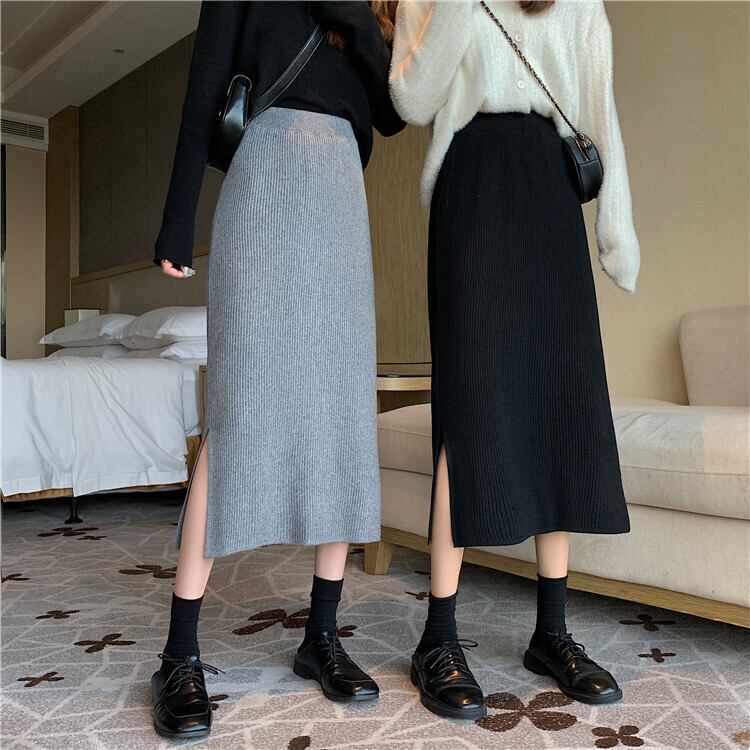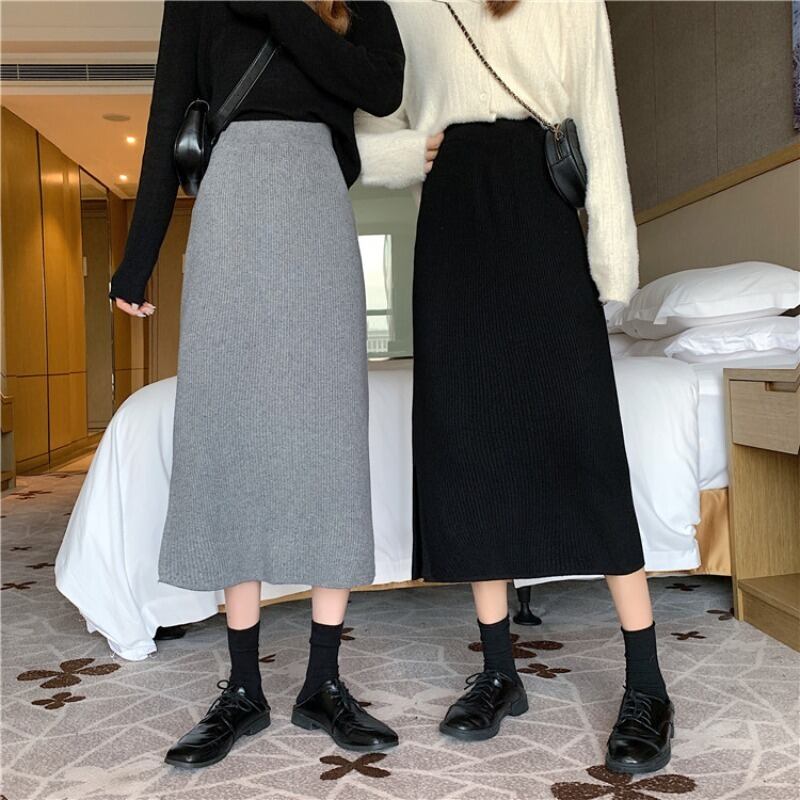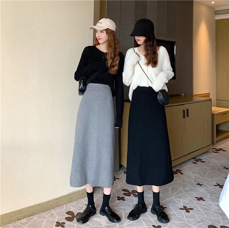 ヴィンテージニットスカート 秋物ウィンターハイウェストウェスト オータム 冬物 ビンテージ ウエスト ミドル丈 コーデ Marchs15101673930