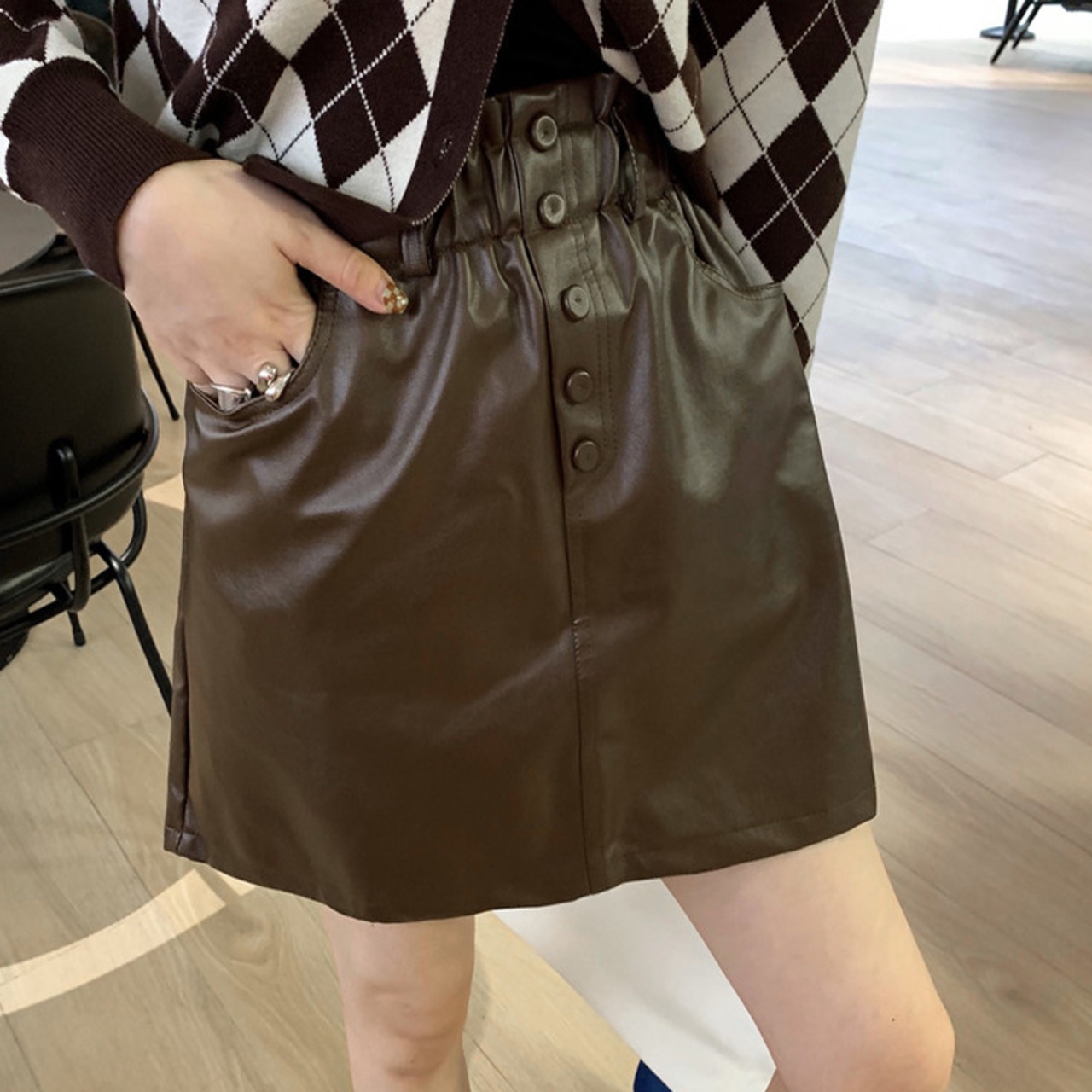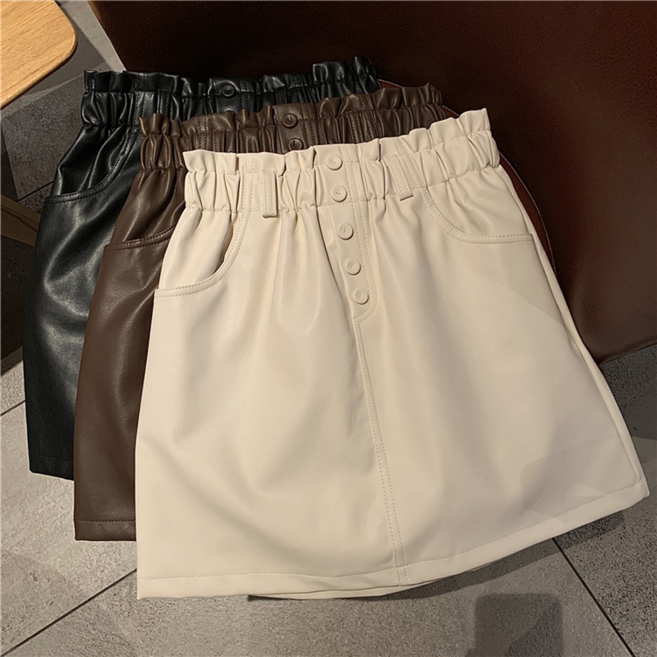 スプリング秋物スタイルハイウェストウェスト薄手レザースカート ショートブラックレディース 大人ガーリー スウィート キュート カジュアル 春物 オータム ウエスト コーデ marchs6710996119810