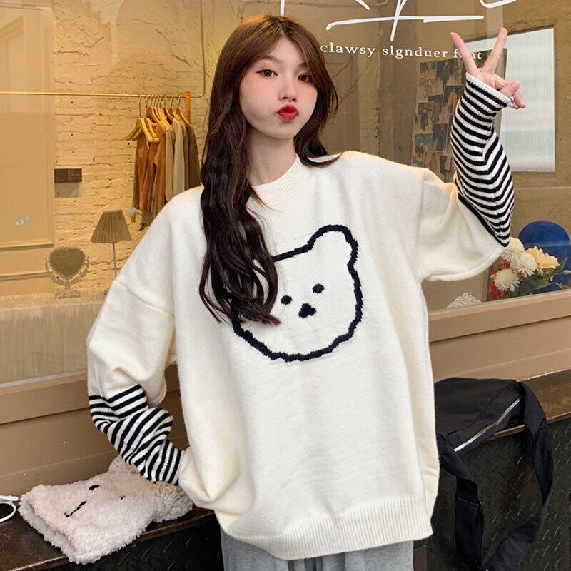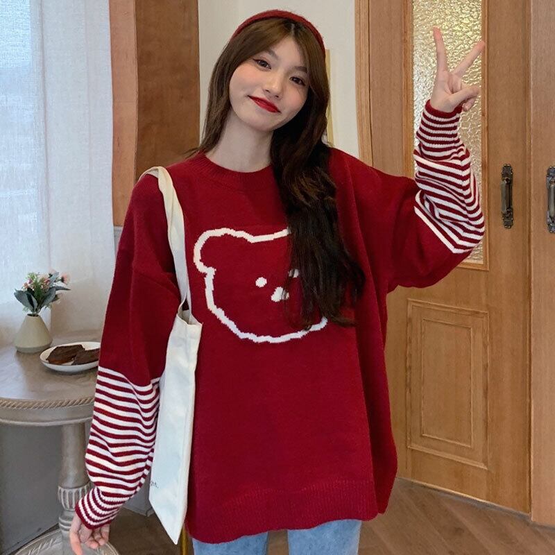 秋物ウィンター韓国ファッションストライプセーター トップス 大人ガーリー スウィート キュート カジュアル オータム 冬物 スタイル コーデ marchs6750800442613