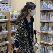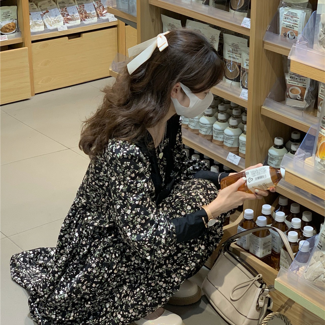 カラースタンダードスタイルフローラルワンピーススプリング秋物スカート ロング レトロ レース 春物 オータム 花柄 スクウェア 長袖 コーデ marchs6722505575324