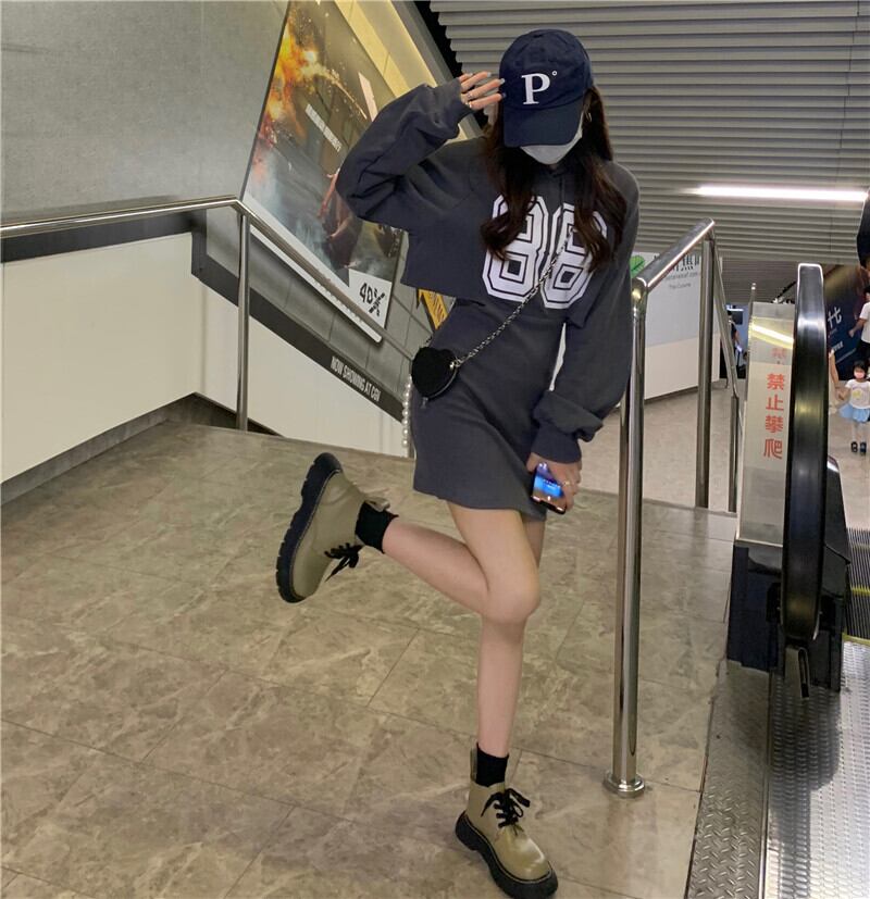 スプリング秋物韓国ファッションルーズフードスリムウェストワンピース 春物 オータム ウエスト コーデ marchs6763678346688