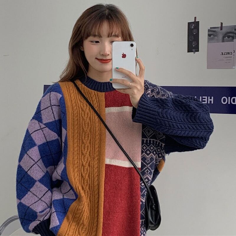 スタンダードカラーセーター 秋物ウィンタースタイルルーズ レトロ オータム 冬物 ステッチ コーデ marchs6781399961244