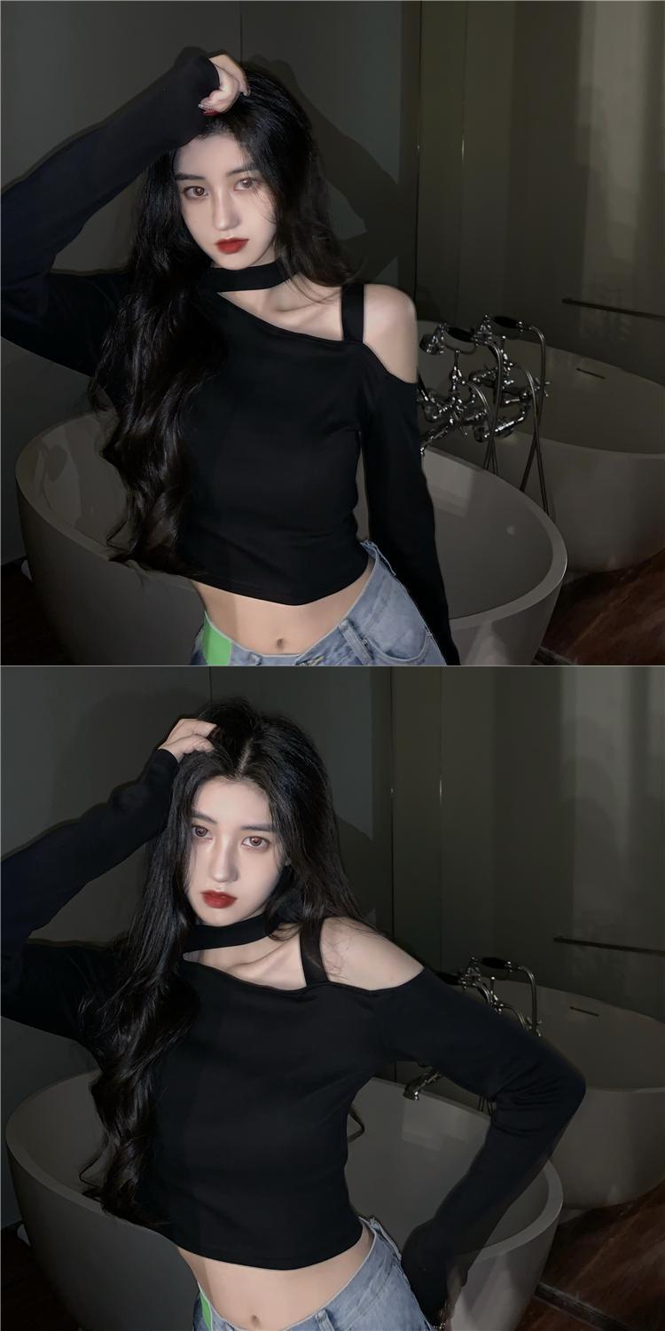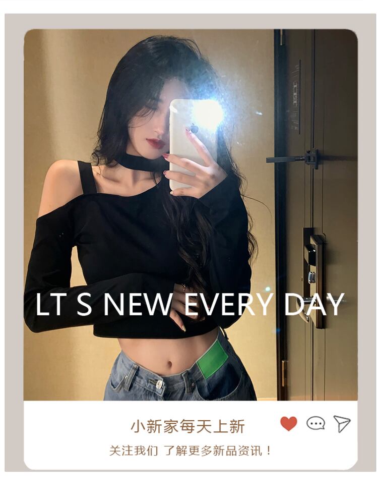 秋物スタイルブラックストラップレスTシャツレディーストップス 大人ガーリー スウィート キュート カジュアル オータム コーデ Marchs95977995047